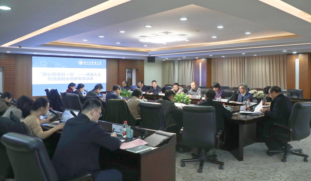 1月20日,学校在滨文校区第六会议室召开主题为“同心同德创一流”的统战人士校情通报会暨新年恳谈会。校党委书记黄文秀、副书记张元龙,校党委委员、统战部部长黄爱军,各级人大代表、政协委员,各民主党派、统战团体负责人,直属附属医院分管统战工作负责人、统战部长以及学校统战部相关负责人等参加会议。