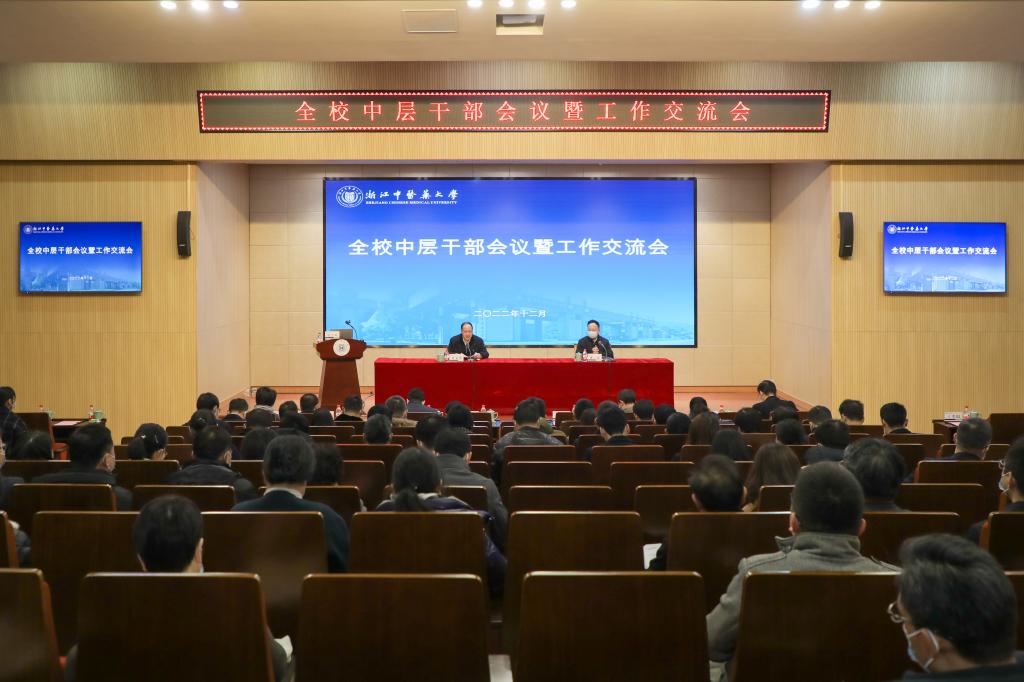 12月14日,学校在滨文校区召开全校中层干部会议暨工作交流会。校党政领导班子成员、全体中层干部参加会议。校党委书记黄文秀主持会议并讲话。