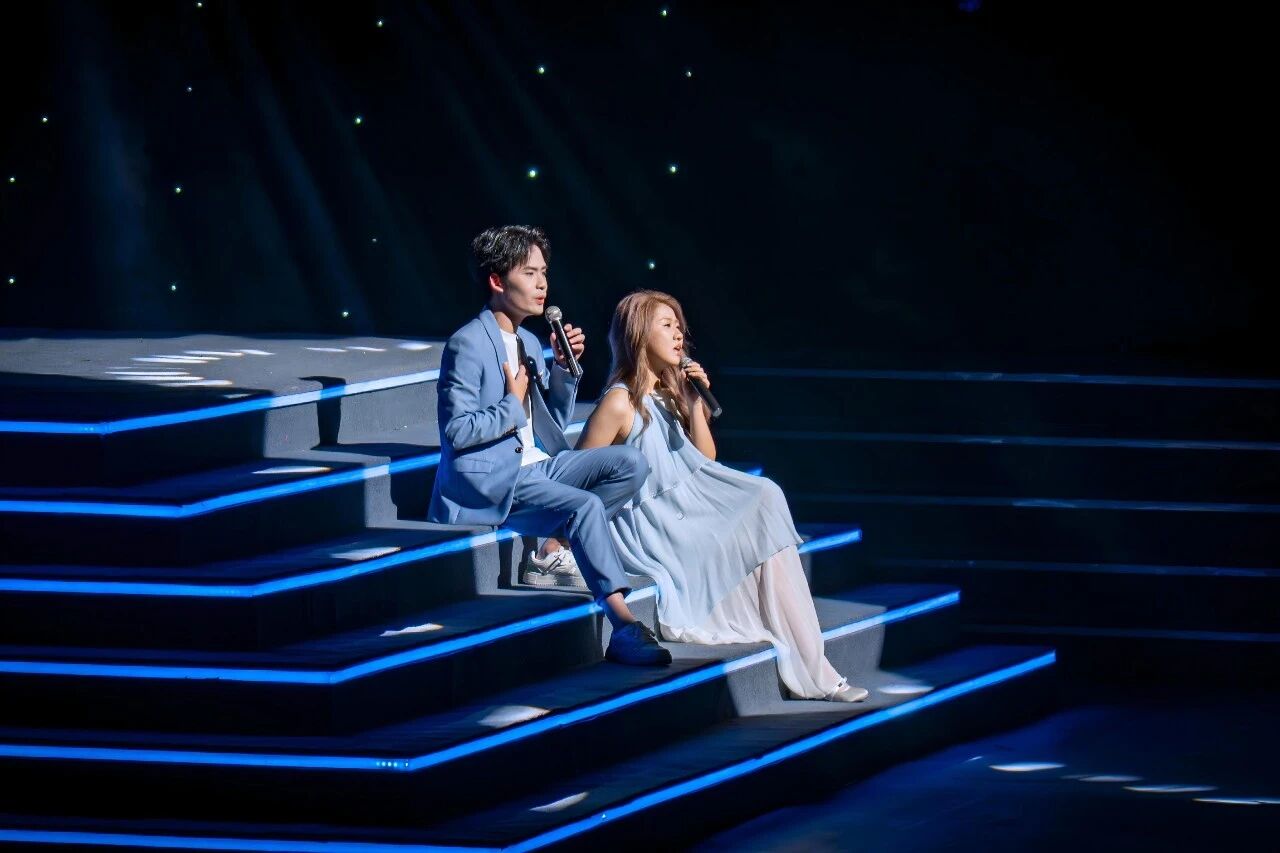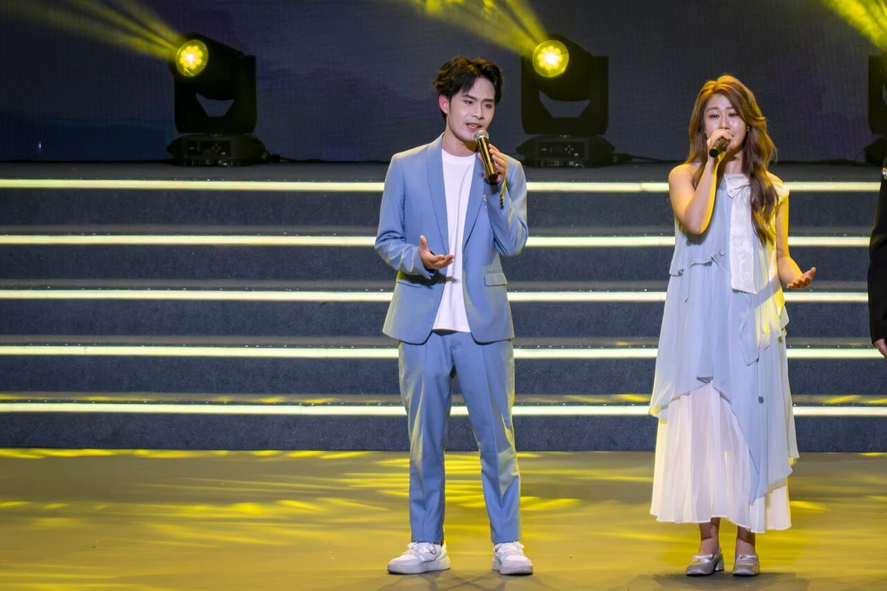 十佳歌手郑亘索(左一)在闭幕式演唱
