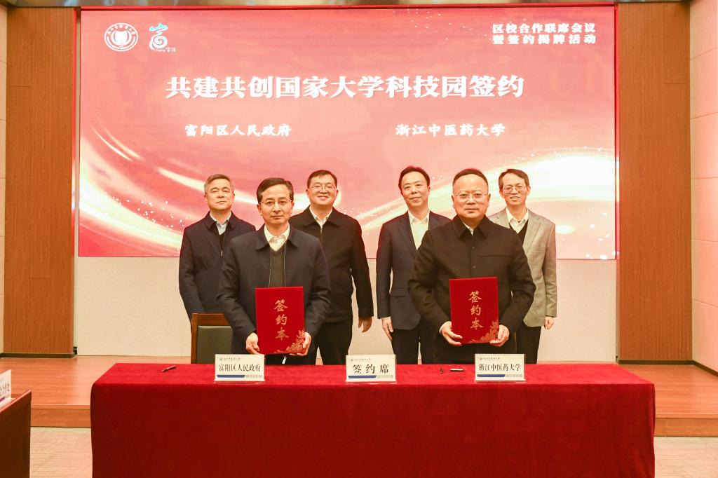 王牮指出,近年来,富阳区与浙江中医药大学围绕医疗服务、产业赋能、教育文化传承等方面,走出一条互利共赢的合作之路。希望双方聚焦“双总部”建设,打造区校融合核心引擎,持续优化“一站式”服务,为师生提供更优保障,推动教育链、人才链与产业链、创新链深度融合,助力富阳城市能级提升;聚焦富阳研究院建设,打造科研创新与成果转化高地,进一步完善治理机制,加大投入力度,让更多科研成果从“实验室”走向“生产线”;聚焦大学科技园建设,打造创新创业与人才培育沃土,完善运营管理机制,建强专业化服务团队,搭建产学研用一体化平台,产出更多标志性成果。